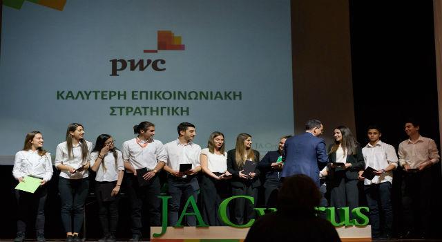 Στον τελικό του σχολικού διαγωνισμού «Επιχείρηση της Χρονιάς», που πραγματοποιήθηκε την Παρασκευή 28 Απριλίου, ο Διευθύνων Σύμβουλος της PwC Κύπρου κ. Ευγένιος Ευγενίου απένειμε το βραβείο «Branding and Communications» στην ομάδα Salthy. Η εν λόγω ομάδα θα έχει την ευκαιρία να επισκεφθεί τα γραφεία του οργανισμού και να συμμετάσχει σε ολοήμερη συνεδρία επαγγελματικής καθοδήγησης (coaching) ειδικά σχεδιασμένη για αυτούς από επαγγελματία «coach» της PwC. Στόχος του προγράμματος είναι να βοηθήσει τους νέους να γνωρίσουν καλύτερα τον εαυτό τους, να εξελιχθούν και να πετύχουν τους στόχους τους.