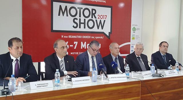 Την επίσημη ανακοίνωση της έκθεσης “MOTOR SHOW 2017” παρουσίασαν ο πρόεδρος της Ομοσπονδίας Εργοδοτών και Βιομηχάνων (ΟΕΒ) Χρίστος Μιχαηλίδης και ο πρόεδρος του Συνδέσμου Εισαγωγέων Μηχανοκίνητων Οχημάτων (ΣΕΜΟ) Πέτρος Κρασσάς σε δημοσιογραφική διάσκεψη την Τρίτη 25 Απριλίου 2017.