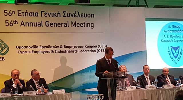 Η χώρα δεν θα είχε εξέλθει από την κρίση χωρίς τη συμβολή της ΟΕΒ, της επιχειρηματικής κοινότητας και των εργαζομένων, τόνισε ο Πρόεδρος της Δημοκρατίας, Νίκος Αναστασιάδης, μιλώντας στο πλαίσιο της 56ης Ετήσιας Γενικής Συνέλευσης της ΟΕΒ.