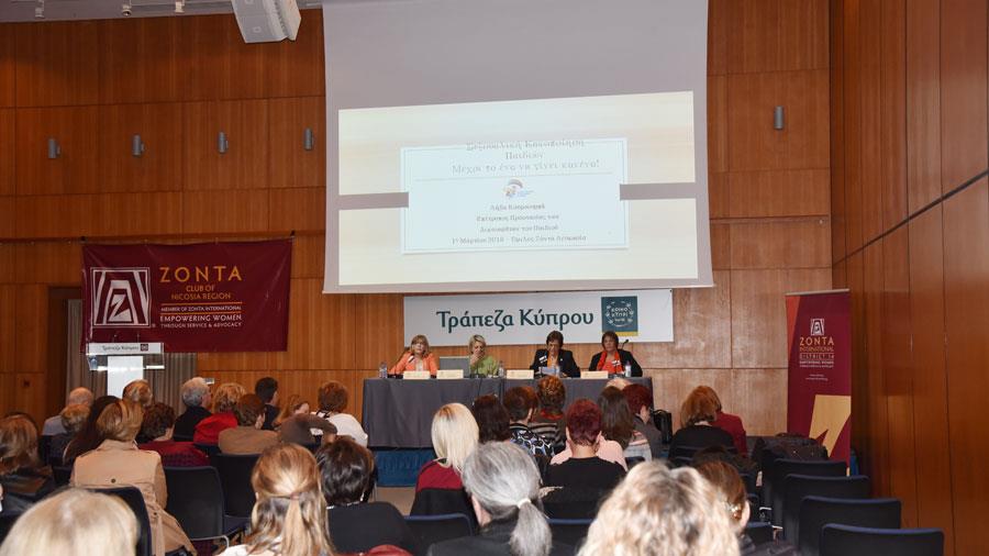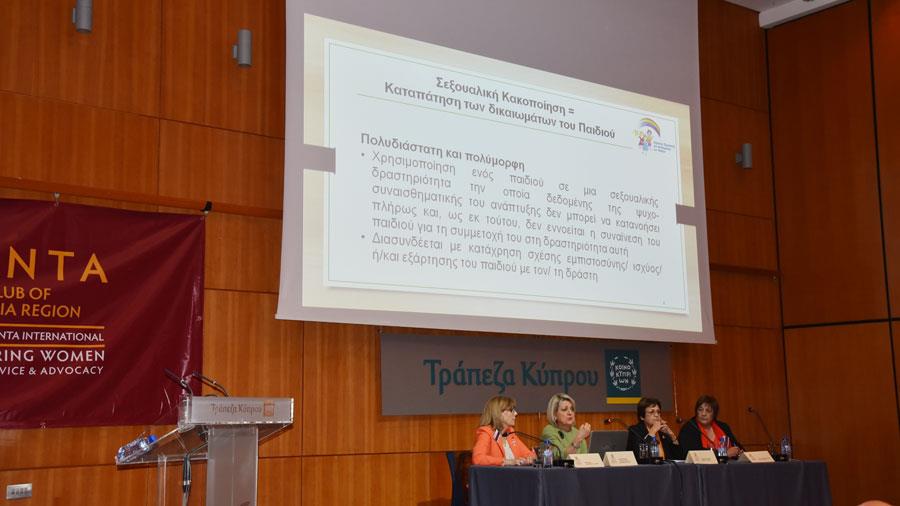 Ο Όμιλος ΖΟΝΤΑ Λευκωσίας διοργάνωσε την 1η Μαρτίου, 2018, στην Αίθουσα Εκδηλώσεων της Τράπεζας Κύπρου στη Λευκωσία, εκδήλωση με το πιο πάνω θέμα. Η κα Λήδα Κουρσουμπά, Επίτροπος Προστασίας των Δικαιωμάτων του Παιδιού παρουσίασε και ανάπτυξε το πολύ λεπτό αλλά και πολύπλοκο πρόβλημα της σεξουαλικής κακοποίησης των παιδιών μέσα από μία πολύ περιεκτική ομιλία. Ένα στα 5 παιδιά στη χώρα μας κακοποιείται σεξουαλικά, και είναι αναγκαία η ευαισθητοποίηση όλων των εμπλεκομένων στο μεγάλωμα και στη διαπαιδαγώγηση των παιδιών ώστε να μπορούν να μεγαλώνουν σε ένα υγιές και προστατευμένο περιβάλλον.