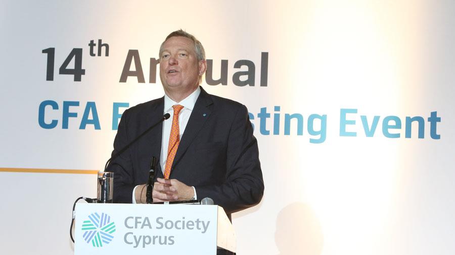 Κάθε χρόνο, το ετήσιο CFA Forecasting Event συγκεντρώνει την χρηματοοικονομική κοινότητα της Κύπρου σε μια συζήτηση για τις τελευταίες διεθνείς και τοπικές οικονομικές προβλέψεις. Φέτος, το CFA Society Cyprus εκπροσωπήθηκε σε κορυφαίο επίπεδο από τον πρόεδρο και Διευθύνοντα Σύμβουλο (CEO) του CFA Institute, Paul Smith, CFA, ο οποίος στην ομιλία του αναφέρθηκε στο μέλλον των Χρηματοοικονομικών και το νέο τοπίο στον επενδυτικό κόσμο. Όπως είπε, ο επενδυτικός κλάδος ανθίζει, καθώς εστιάζει όλο και περισσότερο στις αρχές της εμπιστοσύνης και της ηθικής, που είναι και οι αρχές που προωθεί και στηρίζει το CFA Institute. «Την ίδια ώρα, οι εναλλακτικοί παροχείς και οι τεχνολογίες γεμίζουν το κενό που αφήνει η δυσλειτουργία των κεφαλαιαγορών», πρόσθεσε.