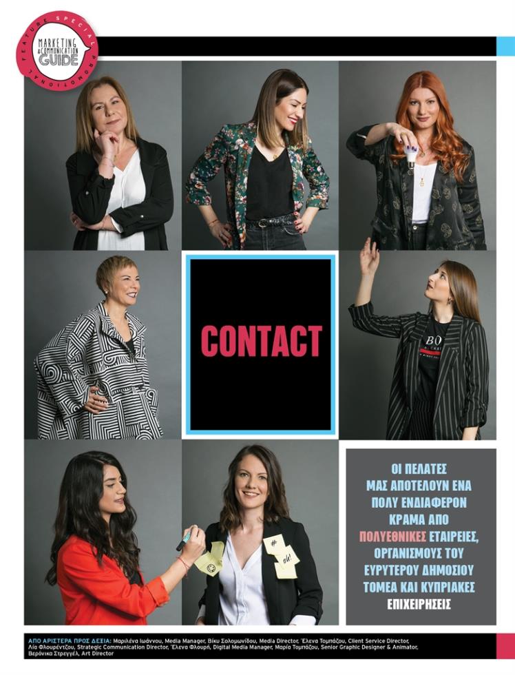 Από το 1982, «Always in Contact». Το 1982, τότε που οι λέξεις επικοινωνία και επαφή δεν είχαν το φορτισμένο με τις δυνατότητες που παρέχουν οι σημερινές τεχνολογίες περιεχόμενο, ήταν η οξυδέρκεια του ιδρυτή και Διευθύνοντα Συμβούλου της Contact, Μίκη Χριστοδούλου, που τον οδήγησε σ’ αυτό το εταιρικό brand name, έχοντας κατά νου μια εταιρική φιλοσοφία, που έχει ως κεντρικό πυρήνα της, τη διαρκή Επαφή. Έτσι, με θεμέλιο την ήδη συσσωρευμένη πείρα του Μίκη Χριστοδούλου από μεγάλες αγορές Διαφήμισης και Marketing της Ευρώπης, η Contact μεγαλώνει μαζί με την κυπριακή οικονομία, βγαίνει όχι απλά αλώβητη, αλλά και ενισχυμένη από την τεράστια κρίση της αγοράς, που ειδικά για τον τομέα της Επικοινωνίας άρχισε το 2011 και συνεχίζει να εξελίσσεται, πάντα σε Επαφή με τις τάσεις, τα μέσα και τα εργαλεία της σύγχρονης επικοινωνίας.
