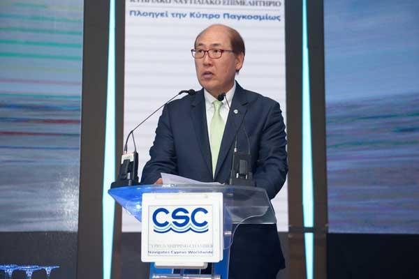 Στην προσφώνησή του ο Γενικός Γραμματέας, κ. Kitack Lim, σημείωσε πως θεωρεί την Κύπρο στον τομέα της Ναυτιλίας ως λαμπρό παράδειγμα επιτυχίας σε παγκόσμιο επίπεδο. Στη συνέχεια, αναφέρθηκε εκτενώς στο επίκαιρο θέμα των σημαντικών προσπαθειών του Διεθνή Ναυτιλιακού Οργανισμού και της Ναυτιλιακής Βιομηχανίας για την περαιτέρω μείωση του περιβαλλοντικού αποτυπώματος της παγκόσμιας Ναυτιλίας, καθιστώντας την ακόμα πιο φιλική για το περιβάλλον.