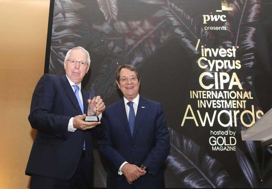 Τιμητικό βραβείο Invest Cyprus CIPA International Investment Awards παρέλαβε η Τράπεζα Αναπτύξεως του Συμβουλίου της Ευρώπης ως φόρο τιμής για την στήριξη των επενδύσεων στην Κύπρο.