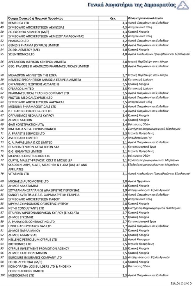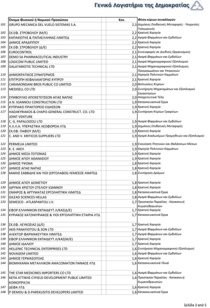 Στη δημοσιότητα δόθηκαν σε συνολική βάση για όλη την Κυβέρνηση όλα τα φυσικά ή νομικά πρόσωπα που έλαβαν κατά το 2017 πέραν του ενός εκατομμυρίου ευρώ, μαζί με περιγραφή της κύριας φύσης των συναλλαγών τους.
