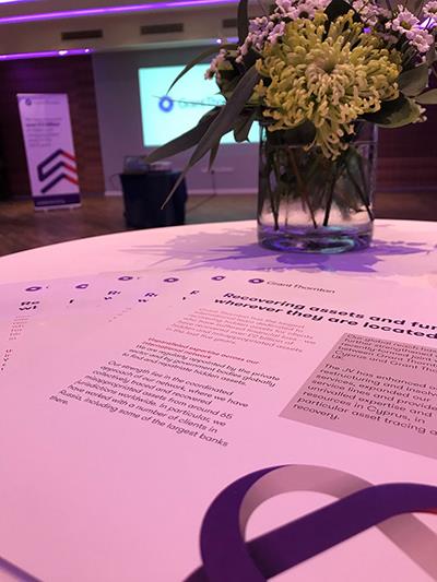 Η βραδιά ξεκίνησε με τρεις σύντομες ομιλίες από τους Στέφανο Μιχαηλίδη, εκ μέρους της Grant Thornton Κύπρου και Andrew Charters και Michael Leeds εκ μέρους της Grant Thornton Ηνωμένου Βασιλείου. Ο κος Μιχαηλίδης, αφού ευχαρίστησε τους παρευρισκόμενους, τόνισε, πως η ομάδα που έχει συσταθεί, κατέχει εκτενή εμπειρία και τεχνογνωσία και είναι έτοιμη να προσφέρει υπηρεσίες αναδιάρθρωσης και αναδιοργάνωσης υψηλής ποιότητας, αλλά και καινοτόμες υπηρεσίες για τα Κυπριακά δεδομένα, όπως ο εντοπισμός και η ανάκτηση στοιχείων ενεργητικού («asset tracing») ανά το παγκόσμιο εκ μέρους χρεωστών.
