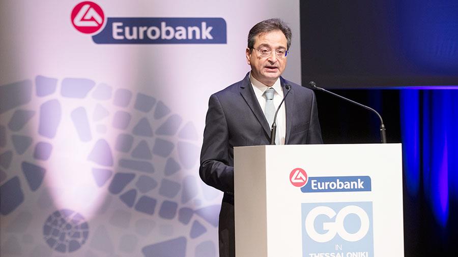 Στην ομιλία του ο Διευθύνων Σύμβουλος της Eurobank, ο κ. Καραβίας, μεταξύ άλλων, σημείωσε: «Τα τελευταία χρόνια, λόγω της κρίσης, διατυπώνεται συχνά η εκτίμηση ότι οι τράπεζες δεν παρέχουν επαρκή χρηματοδότηση, ενώ πρόσφατα, μια αναταραχή, κυρίως χρηματιστηριακού χαρακτήρα, μολονότι ήταν εξωγενούς χαρακτήρα, αναζωπύρωσε τη συζήτηση γύρω από τις προοπτικές των ελληνικών τραπεζών» σημείωσε και τόνισε: «Στο ζήτημα της εμπιστοσύνης απαντά η παρουσία, σε αυτή την αίθουσα σήμερα, των εκπροσώπων σημαντικών ξένων χρηματοπιστωτικών ιδρυμάτων, που επιλέγουν ως εταίρο σε διεθνές πλαίσιο τη Eurobank και μιλούν, όχι με λόγια, αλλά με την υπογραφή τους σε συμφωνίες μακροπρόθεσμης συνεργασίας. Τους ευχαριστώ για άλλη μια φορά και ξέρουν πως θα τιμήσουμε και θα ανταποδώσουμε αυτή την εμπιστοσύνη. Σε ό, τι αφορά τη χρηματοδότηση των επιχειρήσεων, γι΄ αυτό ακριβώς ήρθαμε στη Θεσσαλονίκη και δεσμεύομαι ότι είμαστε εδώ για να υλοποιήσουμε από κοινού τους σχεδιασμούς και τις φιλοδοξίες της κάθε επιχείρησης».