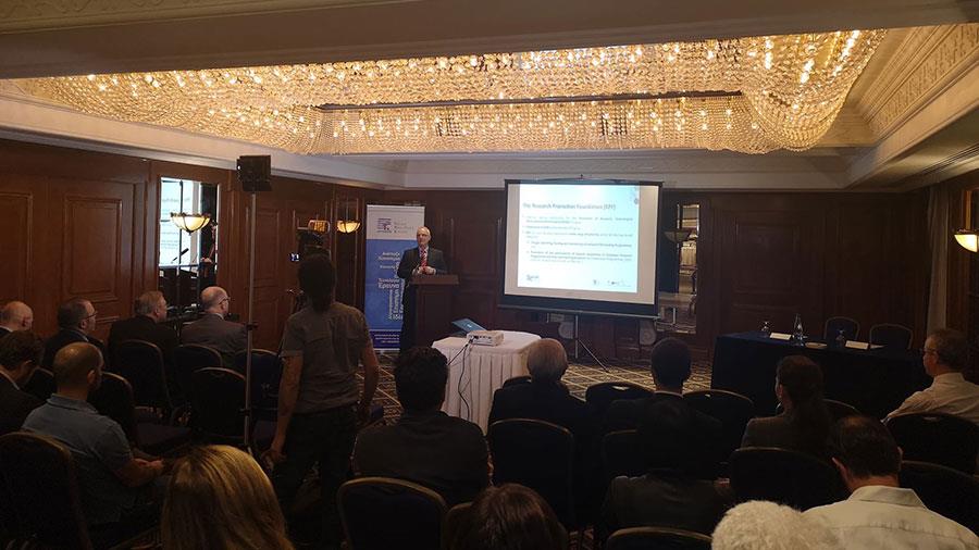 Συγκεκριμένα, το ΙΠΕ παρουσίασε σε ειδική εκδήλωση που πραγματοποιήθηκε την Τρίτη, 20 Νοεμβρίου 2018, δύο νέες Προσκλήσεις Υποβολής Προτάσεων, συνολικού προϋπολογισμού ύψους €600.000 στο πλαίσιο του Προγράμματος «Διακρατικές Συνεργασίες». Κατά τη διάρκεια της εκδήλωσης, μέλη της ερευνητικής κοινότητας, κρατικοί αξιωματούχοι καθώς και προσωπικότητες του επιχειρηματικού κόσμου, είχαν τη δυνατότητα να ενημερωθούν από τους εκπροσώπους του Ιδρύματος για τις ευκαιρίες χρηματοδότησης που προκύπτουν μέσα από τις Προσκλήσεις «Κύπρος-Ρωσία (FASIE)» και «Κύπρος-Ρωσία (RFBR).