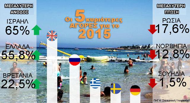 Η μεγάλη άνοδος από το Ισραήλ, η σταδιακή αποκατάσταση της ροής αφίξεων από τη Βρετανία και τη Γερμανία αποτελούν τα θετικά σημεία στα οποία ο ΚΟΤ επιδιώκει να κτίσει για περαιτέρω αφίξεις το 2016.