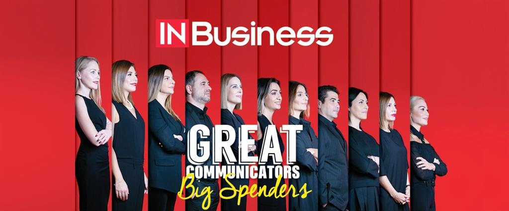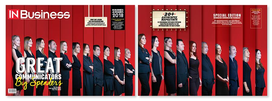 Εξώφυλλο με ειδική φωτογράφιση 20+ διευθυντών επικοινωνίας μεγάλων κυπριακών εταιρειών από διάφορους τομείς της αγοράς, που κυριολεκτικά κόβει τις ανάσες κοσμεί το εξώφυλλο του νέου τεύχους του περιοδικού ΙΝ Business που κυκλοφορεί στα περίπτερα την Κυριακή 4 Νοεμβρίου με cover story “Great communicators, big spenders”.