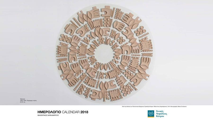 Οι Γενικές Ασφάλειες Κύπρου προβάλλουν για ακόμα φορά την πολιτιστική ταυτότητα του τόπου μας επιλέγοντας για την εικονογράφηση του ετήσιου ημερολογίου τους έργα του καταξιωμένου Κύπριου κεραμίστα Βαλεντίνου Χαραλάμπους.
