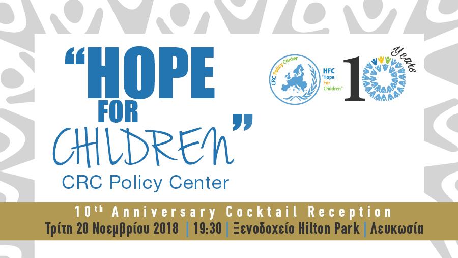 Ο διεθνής, ανθρωπιστικός κι ανεξάρτητος οργανισμός “Hope For Children” CRC Policy Center διοργανώνει εκδήλωση-κοκτέιλ με αφορμή τη συμπλήρωση 10 χρόνων παρουσίας, δράσης και συνεισφοράς του στην προάσπιση και προώθηση των δικαιωμάτων των παιδιών και των νέων.