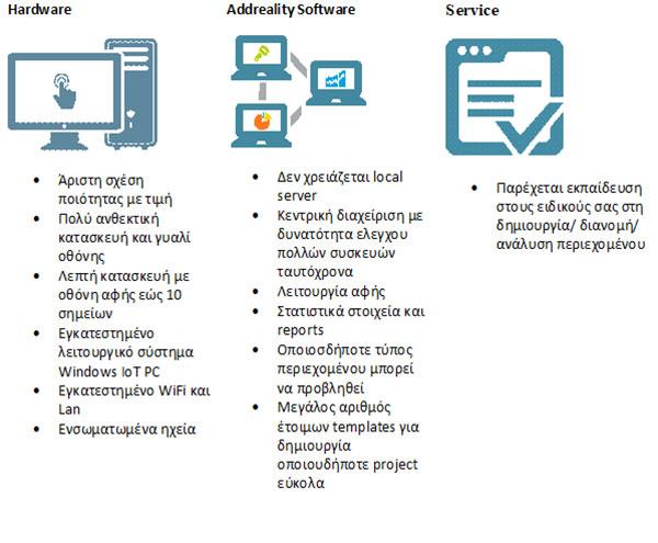 Φροντίσαμε να σας παρέχουμε όχι μόνο την συσκευή (hardware) αλλά όλη τη λύση από την ιδέα έως την ενημέρωση και την ανάλυση του προβαλλόμενου περιεχομένου για να σας διασφαλίσουμε άνετη και αποτελεσματική λειτουργία.