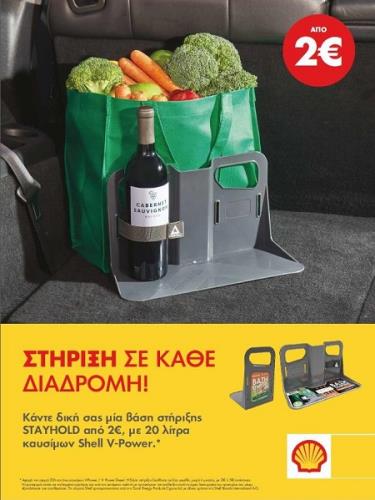 Κάθε φορά που οι καταναλωτές ανεφοδιάζουν το όχημά τους με τουλάχιστον 20 λίτρα από τα αγαπημένα καύσιμα Shell V-Power ή Shell V-Power Diesel έχουν τη δυνατότητα να κάνουν δική τους μία βάση στήριξης Stayhold Mini ή Metro Medium με Quick Strap με επιπλέον χρέωση μόλις 2€ ή 5€, αντίστοιχα.