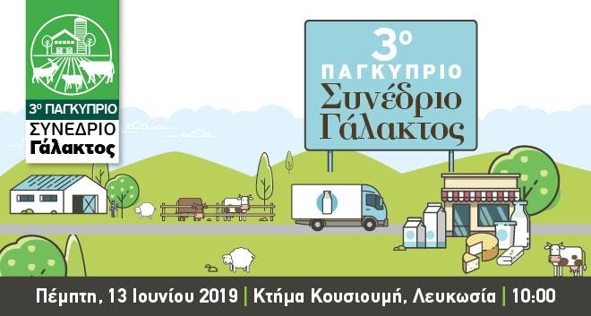 Το «3ο Παγκύπριο Συνέδριο Γάλακτος» οργανώνεται φέτος την Πέμπτη 13 Ιουνίου 2019, στο Κτήμα Κουσιουμή στη Λευκωσία και φέρνει στο προσκήνιο τις τάσεις, πρακτικές και τα εμπόδια που αντιµετωπίζουν οι σύγχρονοι ντόπιοι παραγωγοί στους τοµείς της Αγελαδοτροφίας και Αιγοπροβατοτροφίας. Μέσα από παραδείγµατα, παρουσιάσεις και ενδιαφέροντα σχέδια χρηµατοδότησης, το Συνέδριο επικοινωνεί όλα τα απαραίτητα στοιχεία, τις διεθνείς πρακτικές και προοπτικές γύρω από την εφικτή ανάπτυξη της Κυπριακής Κτηνοτροφίας. Στόχος της διοργάνωσης, να συζητηθούν τα πάντα γύρω από τα γαλακτοκομικά προϊόντα, τις εξαγωγικές διαδικασίες και την αντιμετώπιση του διεθνούς ανταγωνισµού.