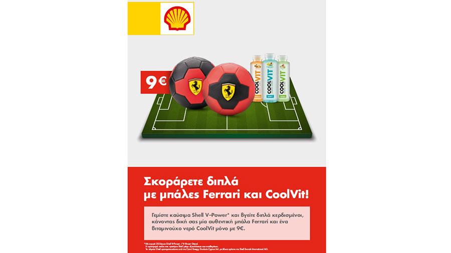 Από σήμερα, κάθε καταναλωτής που επιλέγει τα πρατήρια καυσίμων Shell για τον ανεφοδιασμό του οχήματός του, έχει τη δυνατότητα να αποκτήσει μια αυθεντική μπάλα Ferrari, καθώς και ένα εμπλουτισμένο με βιταμίνες νερό CoolVit.