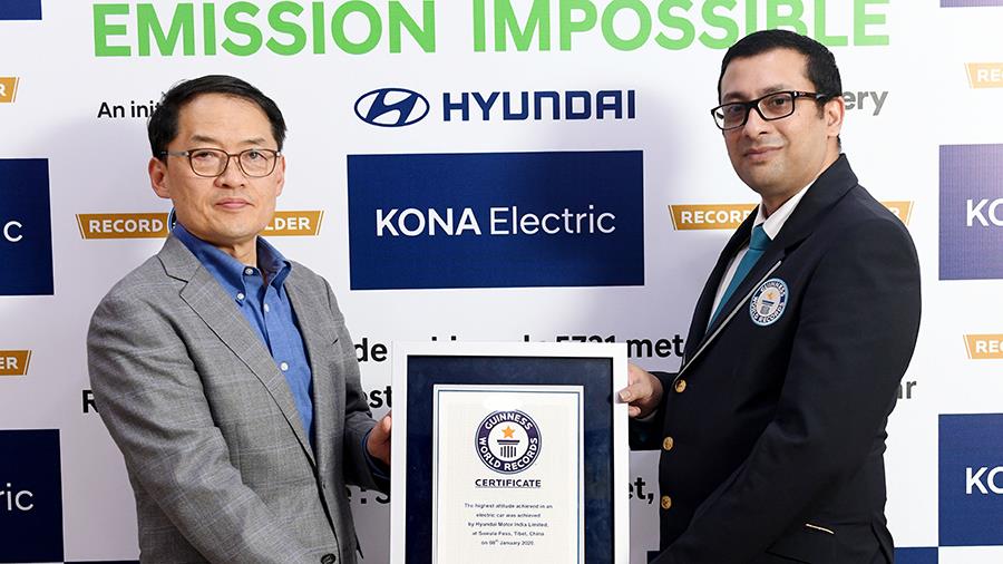 Η Hyundai Motor στην Ινδία έβαλε το νέο ηλεκτρικό KONA στα παγκόσμια ρεκόρ Guinness, με την επίδοση της πιο μεγάλης ανάβασης να φτάνει τα 5.731 μέτρα, στο Πέρασμα Sawula, στο Θιβέτ. Με αυτή την επίδοση, το KONA κατέρριψε το προηγούμενο ρεκόρ των 5.715,28 μέτρων με ηλεκτρικό αυτοκίνητο.