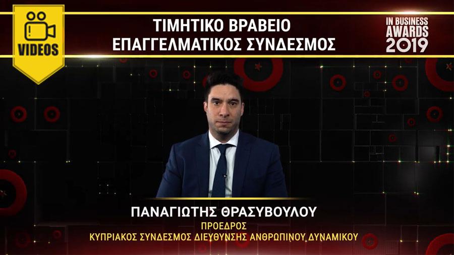 Με το Τιμητικό Βραβείο Επαγγελματικώς Σύνδεσμος τιμήθηκε ο Κυπριακός Σύνδεσμος Διεύθυνσης Ανθρώπινου Δυναμικού στα IN Business Awards 2019.