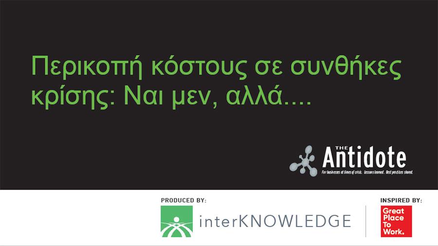 Κλείνοντας, ας επαναλάβουμε ότι η στρατηγική είναι εκείνη που θέλουμε να υπαγορεύει τις ενέργειες μείωσης του κόστους και όχι το αντίθετο.