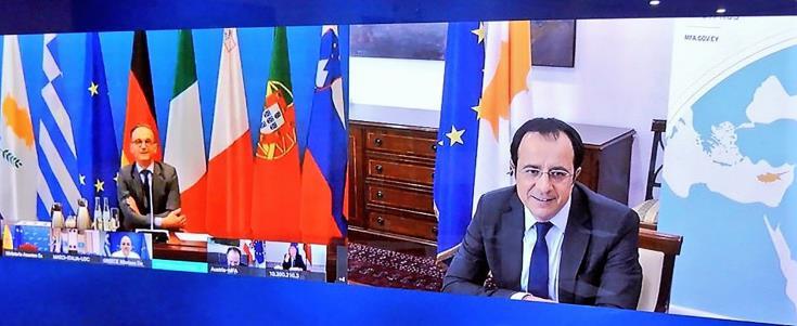 Μιλώντας στο ΚΥΠΕ, ο κ. Χριστοδουλίδης ανέφερε πως στη τηλεδιάσκεψη παρουσίασε την στρατηγική και τους σχεδιασμούς της Κυπριακής Δημοκρατίας, όπως καταρτίζονται στη βάση των θετικών επιδημιολογικών δεδομένων.