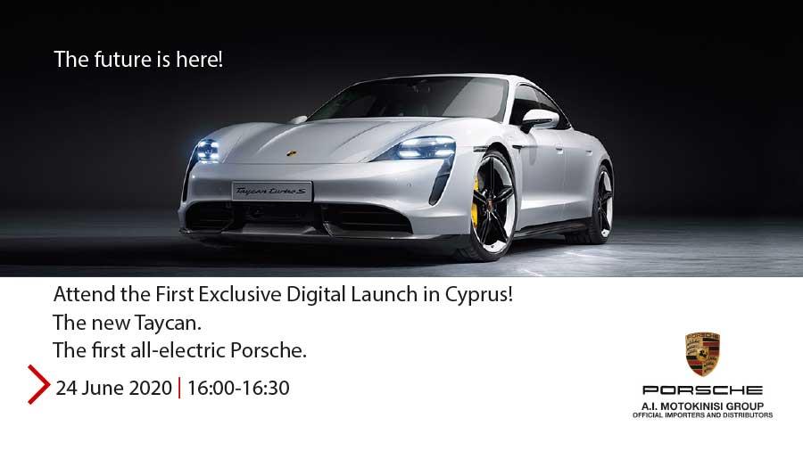 Το νέο Porsche Taycan αποκαλύπτεται στην κυπριακή αγορά από την εταιρεία A.I.Motokinisi Ltd, αποκλειστικός αντιπρόσωπος της Porsche στην Κύπρο, σε μια μοναδική ηλεκτρονική εκδήλωση στις 24 Ιουνίου από τις 16:00 μέχρι τις 16:30.