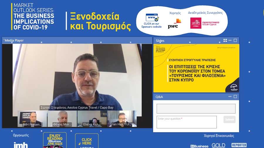 Δεν μπορούν να γίνουν ασφαλείς εκτιμήσεις για το πως θα κινηθεί ο Τουρισμός και ο ξενοδοχειακός τομέας. Αυτό ανέφερε ο Σώτος Στεφάνου Διευθύνων Σύμβουλος, Aeolos Cyprus Travel – Διευθυνών Σύμβουλος, Ξενοδοχείο Capo Bay, μιλώντας στο Market Outlook Series: Ξενοδοχεία και Τουρισμός.