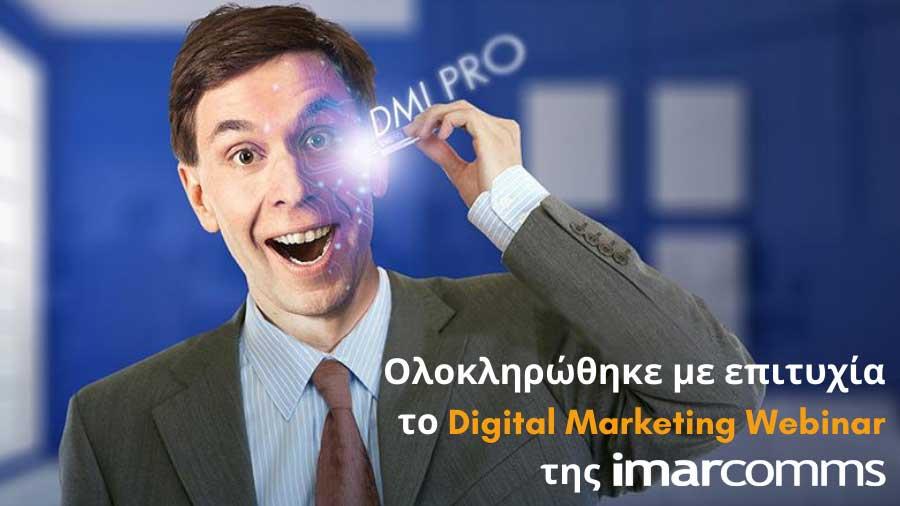 Ολοκληρώθηκε με επιτυχία το Digital Marketing Webinar της ImarComms, Digital Marketing Agency & Διεθνής Συνεργάτης του Digital Marketing Institute, όπου δόθηκαν 2 Πλήρης Υποτροφίες για το πρόγραμμα DMI PRO – Professional Diploma in Digital Marketing σε δύο τυχερούς συμμετέχοντες του Webinar.