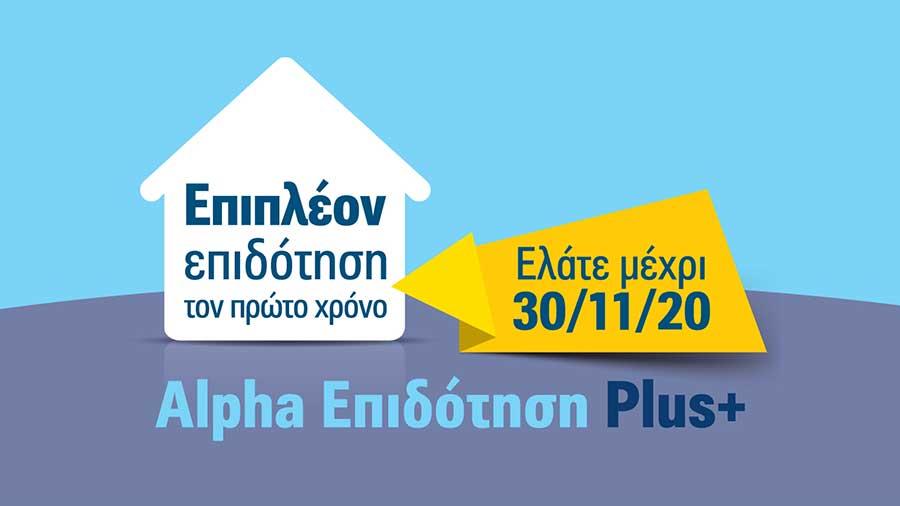 Το Alpha Επιδότηση Plus+ ισχύει για αιτήσεις νέων στεγαστικών δανείων για αγορά ή ανέγερση πρώτης κατοικίας που θα υποβληθούν μέχρι τις 30.11.2020 και θα εγκριθούν στο πλαίσιο του Σχεδίου Επιδότησης Επιτοκίων για Νέα Στεγαστικά Δάνεια το οποίο εγκρίθηκε από το Υπουργικό Συμβούλιο. Εξαιρούνται στεγαστικά δάνεια τα οποία τυγχάνουν άλλης επιχορήγησης.