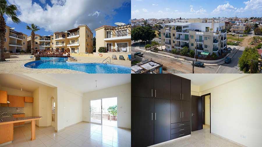 Τα τρία διαμερίσματα εντοπίζονται στην περιοχή του ΚΕΝ Γεροσκήπου και πολύ κοντά στο δημαρχείο της πόλης, είναι δύο υπνοδωματίων και βρίσκονται στην ίδια πολυκατοικία.