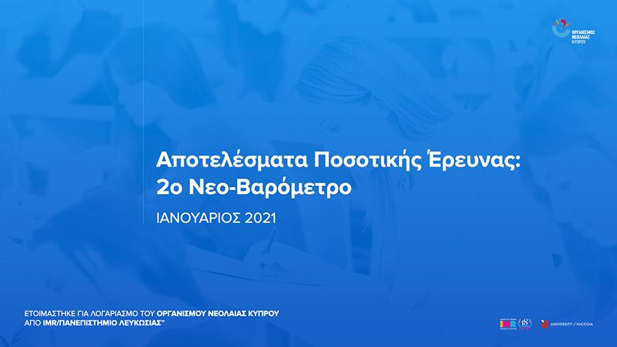 Κατά την περίοδο Νοεμβρίου-Δεκεμβρίου 2020, διενεργήθηκε το δεύτερο κατά σειρά «Νέο-Βαρόμετρο», το οποίο διερεύνησε την παρούσα κατάσταση των νέων, τις επιπτώσεις της πανδημίας στη νεολαία, τις προσδοκίες των νέων για το μέλλον και τις αντιλήψεις τους σχετικά με την πολιτική και τη συμμετοχή στα κοινά, ενόψει των επερχόμενων Βουλευτικών Εκλογών. Στην έρευνα έλαβαν μέρος 1000 νέοι και νέες, ηλικίας 14-35 ετών, οι οποίοι επιλέγηκαν με τη μέθοδο της τυχαίας δειγματοληψίας.