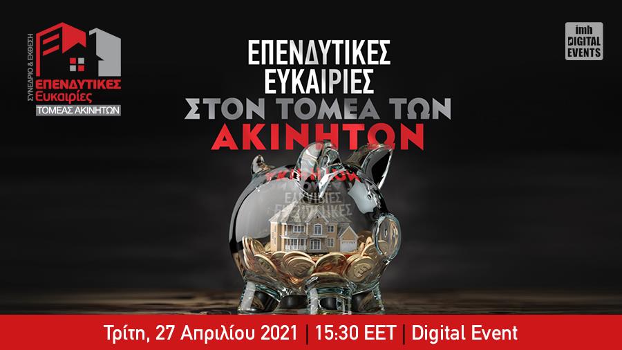 Στο διαδικτυακό συνέδριο με τίτλο «Επενδυτικές ευκαιρίες στον τομέα των ακινήτων» που διοργανώνει η ΙΜΗ την Tρίτη 27 Απριλίου 2021, θα παρουσιαστούν τα ακίνητα σε Κύπρο και εξωτερικό ως επενδυτική επιλογή, ενώ θα αναλυθούν οι διάφορες κατηγορίες επενδύσεων σε ακίνητα και οι επιδιωκόμενες αποδόσεις.