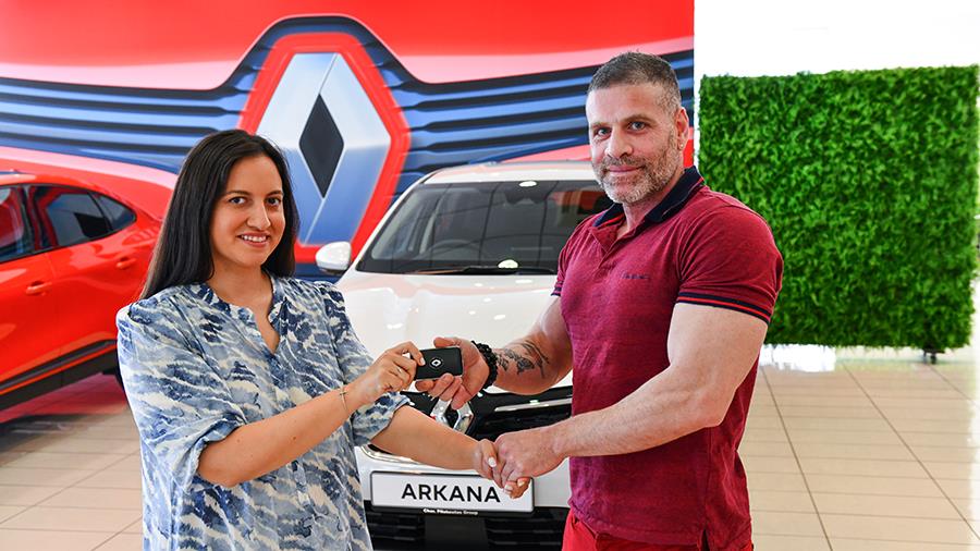 Ο μεγάλος τυχερός του διαγωνισμού, κατά την παραλαβή του νέου Renault Arkana, δέχτηκε εκ μέρους του Ομίλου Πηλακούτα τις ευχές για πολλές και ασφαλείς διαδρομές με ένα αυτοκίνητο που πραγματικά κάνει την οδήγηση απόλαυση.