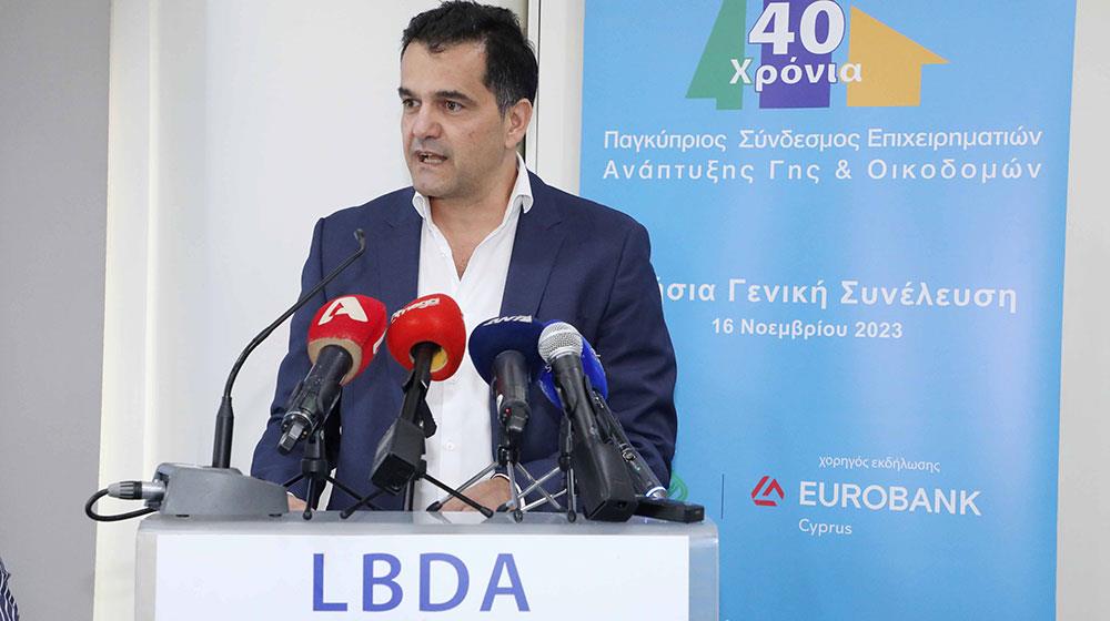 «Ο κλάδος της ανάπτυξης γης και οικοδομών είναι συνυφασμένος με την οικονομική ανάπτυξη και την πρόοδο της χώρας», επεσήμανε από το βήμα της Ετήσιας Γενικής Συνέλευσης του Παγκύπριου Συνδέσμου Επιχειρηματιών Ανάπτυξης Γης και Οικοδομών, ο πρόεδρος του Συνδέσμου κ. Μιχάλης Χατζηπαναγιώτου, η οποία πραγματοποιήθηκε την Πέμπτη 16 Νοεμβρίου σηματοδοτώντας και τα 40 χρόνια ζωής του Συνδέσμου.