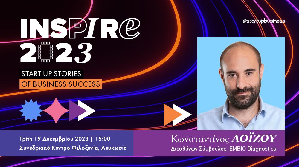 Ο Κωνσταντίνος Λοΐζου, Διευθύνων Σύμβουλος, EMBIO Diagnostics θα μας πλοηγήσει στο ταξίδι της εταιερίας παρέχοντας συμβουλές για το πως οι προκλήσεις μετατρέπονται σε νίκες, κατά τη διάρκεια του προσεχούς Inspire 2023: Start-up Stories of Business Success.