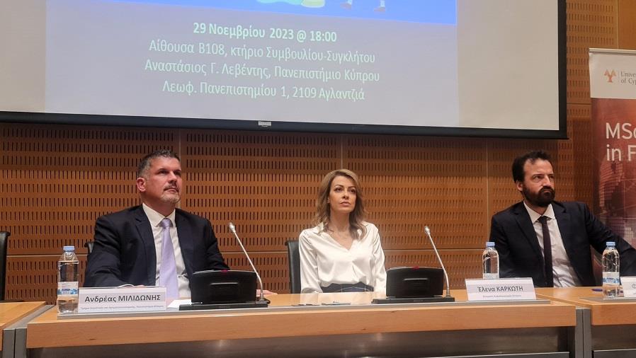 Οι βασικοί ομιλητές της συζήτησης ήταν η Λειτουργός Α', του Τμήματος Στρατηγικής, Διεθνών Σχέσεων και Επικοινωνίας της Επιτροπής Κεφαλαιαγοράς Κύπρου, κ. Έλενα Καρκώτη, και ο Καθηγητής Χρηματοοικονομικής του Τμήματος Λογιστικής και Χρηματοοικονομικής της Σχολής Οικονομικών Επιστημών και Διοίκησης, κ. Ανδρέας Μιλιδώνης. Τη συζήτηση συντόνισε ο Επίκουρος Καθηγητής Οικονομικών του Τμήματος Οικονομικών της Σχολή Οικονομικών Επιστημών και Διοίκησης, κ. Φίλιππος Λούης.