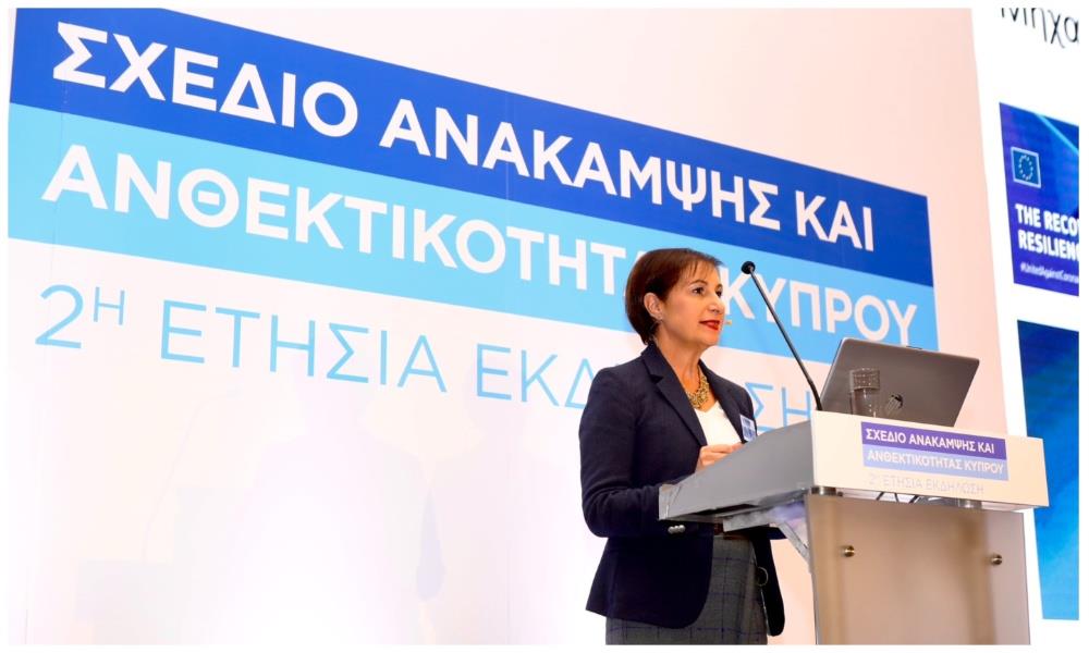 Μιλώντας κατά την 2η Ετήσια Εκδήλωση για το Σχέδιο Ανάκαμψης και Ανθεκτικότητας Κύπρου που διοργάνωσαν η Γενική Διεύθυνση Ανάπτυξης του Υπουργείου Οικονομικών και η Αντιπροσωπεία της Ευρωπαϊκής Επιτροπής στην Κύπρο, η κ. Σαββίδη, εξήγησε, καταρχάς, ότι στόχος του Σχεδίου είναι η ενίσχυση της ανθεκτικότητας της οικονομίας και του δυναμικού της χώρας για οικονομική, κοινωνική και περιβαλλοντικά βιώσιμη μακροπρόθεσμη ανάπτυξη και ευημερία.