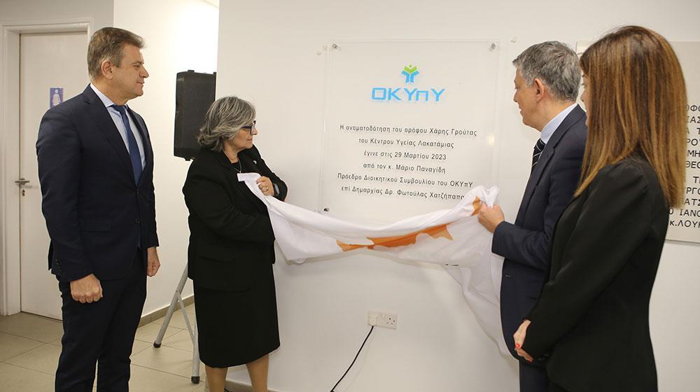 Ο Πρόεδρος του Διοικητικού Συμβουλίου του ΟΚΥπΥ κ. Μάριος Παναγίδης, ανέφερε πως η δωρεά του κ. Χάρη Γρούτα για την ανοικοδόμηση του πρώτου ορόφου του Κέντρου Υγείας Λακατάμιας, έχει συμβάλει σημαντικά στην αναβάθμιση της πρωτοβάθμιας ιατρικής φροντίδας της γύρω περιοχής. «Σήμερα, είναι μία μέρα περηφάνιας και ευγνωμοσύνης προς τον κ. Γρούτα. Το όνομα του θα ακολουθεί πλέον την πορεία ανάπτυξης και εξέλιξης του Κέντρου, ως η ελάχιστη αναγνώριση για την προσφορά του στην κοινωνία της Λακατάμιας ».