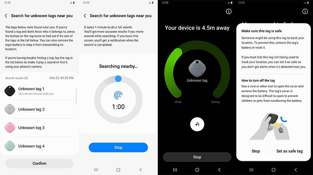 Με τη λειτουργία «Αναζήτηση άγνωστων tags κοντά σας», οι χρήστες Android και iOS μπορούν εύκολα να προσδιορίσουν με μη αυτόματο τρόπο αν βρίσκονται κοντά τους άγνωστα tags. Αυτή η λειτουργία μπορεί να παρέχει ένα μετρητή που δείχνει την ισχύ του σήματος του tag, επιτρέποντας στους χρήστες να γνωρίζουν πόσο κοντά βρίσκεται το άγνωστο tag στην τρέχουσα θέση τους. Εάν χρειάζεται, οι χρήστες μπορούν να ορίσουν ορισμένα tags ως «ασφαλή» εάν είναι αναγνωρισμένα.