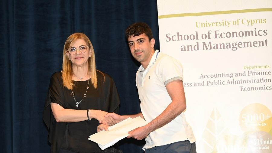 Στο πλαίσιο ειδικής εκδήλωσης που πραγματοποιήθηκε πρόσφατα στην αίθουσα τελετών του Πανεπιστημίου Κύπρου, η Head of Business της cdbbank, κ. Λίζα Φιλίππου απένειμε χρηματικό βραβείο στον πρωτεύσαντα φοιτητή του Τμήματος Οικονομικών με κατεύθυνση στην Οικονομική Θεωρία και Οικονομετρία, Παναγιώτη Κουσεττή. Ο φοιτητής διακρίθηκε για τις υψηλές του ακαδημαϊκές επιδόσεις κατά το ακαδημαϊκό έτος 2022-2023.