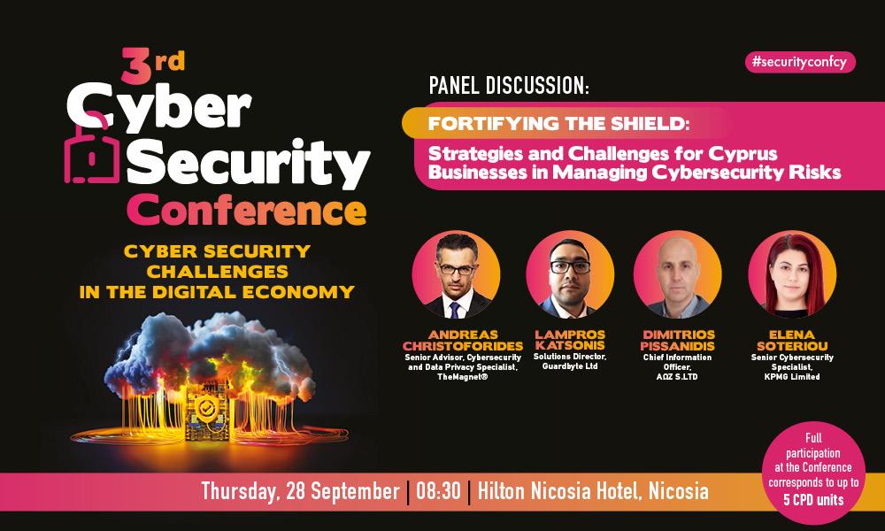 Ποια είναι η κατάσταση στην Κύπρο και ποιες οι μεγαλύτερες προκλήσεις για τις επιχειρήσεις του τόπου; Τις σκέψεις και απόψεις τους για το θέμα θα εκφράσουν ειδικοί του χώρου στο πλαίσιο συζήτησης πάνελ που θα πραγματοποιηθεί κατά το 3ο Cyber Security Conference που θα διεξαχθεί στις 28 Σεπτεμβρίου στο Hilton Nicosia Hotel.