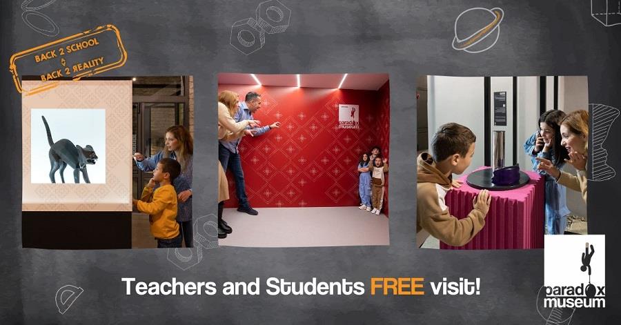 Εξερευνήστε τα εκθέματά μας, εμπνευστείτε και ανακαλύψτε νέους τρόπους για να παρακινήσετε τους μαθητές σας. Επιπλέον, με την ευκαιρία αυτή, αποκλειστικά για δύο εβδομάδες, από την 1η έως τις 14 Σεπτεμβρίου, από Δευτέρα έως Τετάρτη, όλοι οι μαθητές έως 12 ετών καλούνται να ζήσουν την εμπειρία του Paradox Museum Limassol εντελώς δωρεάν.