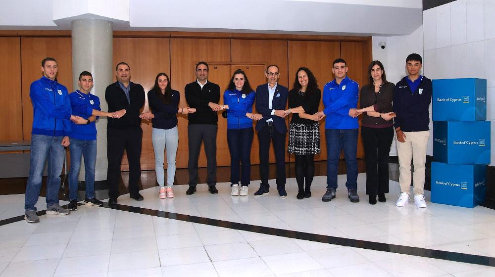 Στο πλαίσιο της μεταξύ τους Χορηγικής συνεργασίας, αντιπροσωπεία της Κυπριακής Ολυμπιακής Επιτροπής με επικεφαλής τον Πρόεδρο Γεώργιο Χρυσοστόμου επισκέφθηκαν τα κεντρικά γραφεία της Τράπεζας Κύπρου, Χρυσού Χορηγού της ΚΟΕ, με στόχο την γνωριμία με τους αθλητές που έχουν ενταχθεί στο «Σχέδιο επιβράβευσης νεαρών αθλητών κάτω των 18 ετών, ως ανερχόμενα ταλέντα στον αθλητισμό». Πρόκειται για ένα σχέδιο που καθιέρωσε η Τράπεζα Κύπρου τα τελευταία χρόνια με στόχο την ανάπτυξη της συνεργασίας με τους νεαρούς αθλητές και τις νεαρές αθλήτριες, και προσφορά προς αυτούς ενός συμβολικού ποσού.
