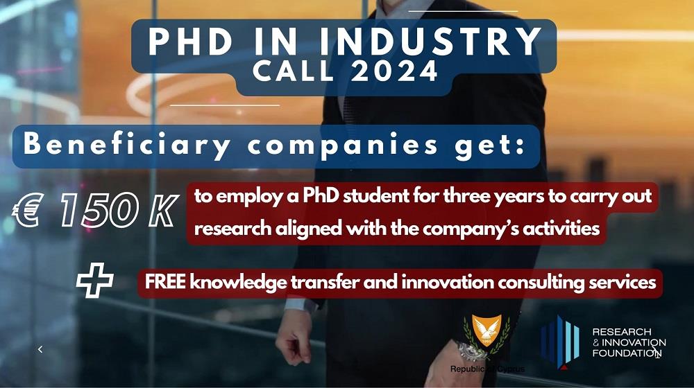 Το Ίδρυμα Έρευνας και Καινοτομίας (ΙδΕΚ) διαθέτει €1,25 εκ. για την υποστήριξη κυπριακών επιχειρήσεων στο πλαίσιο του νέου κύκλου του προγράμματος Διδακτορικό στη Βιομηχανία – «PHD IN INDUSTRY/1124».