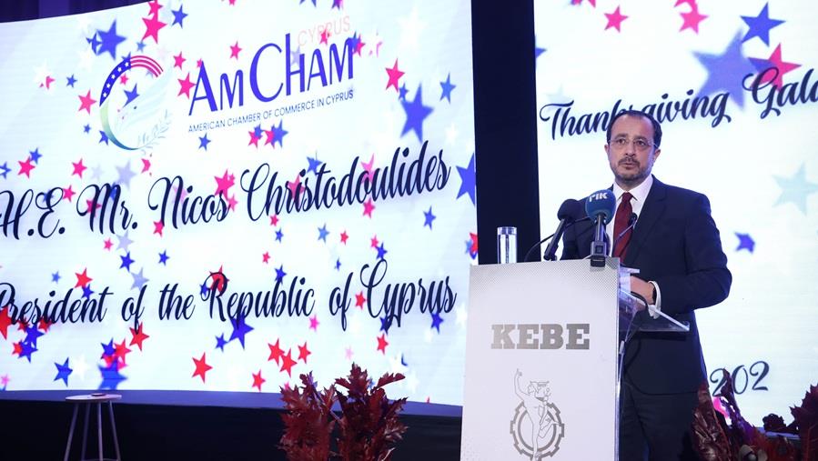 Στις εξαιρετικές σχέσεις Κύπρου – ΗΠΑ που βρίσκονται σήμερα στο υψηλότερο επίπεδο που υπήρξαν ποτέ, αναφέρθηκε το βράδυ της Πέμπτης ο Πρόεδρος της Δημοκρατίας Νίκος Χριστοδουλίδης, ο οποίος παρέστη στο δείπνο που παρέθεσε το Αμερικανικό Εμπορικό Επιμελητήριο Κύπρου (AmCham), στη Λευκωσία, με την ευκαιρία της Γιορτής των Ευχαριστιών.