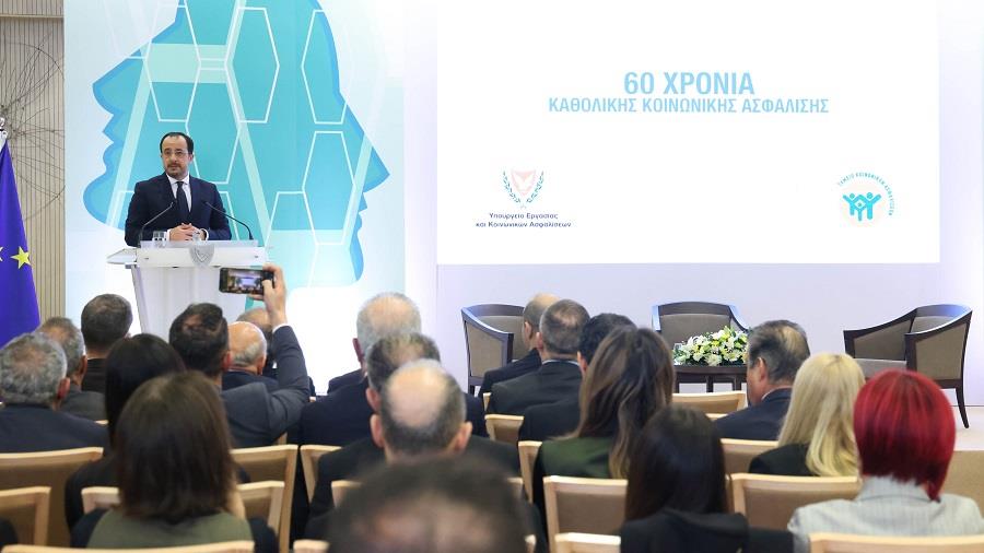 Ο Πρόεδρος ανέφερε ότι η συμπλήρωση 60 χρόνων από την ψήφιση του Περί Κοινωνικών Ασφαλίσεων Νόμου του 1964, αποτελεί την πιο σημαντική κοινωνική επέτειο της Κυπριακής Δημοκρατίας. Και αυτό γιατί με την εν λόγω απόφαση, η τότε νεαρή τότε Κυπριακή Δημοκρατία, ανταποκρίθηκε έμπρακτα στη συνταγματική πρόνοια για την εγγύηση του ατομικού δικαιώματος της κοινωνικής ασφάλειας και της δημιουργίας συστήματος κοινωνικής ασφάλισης.