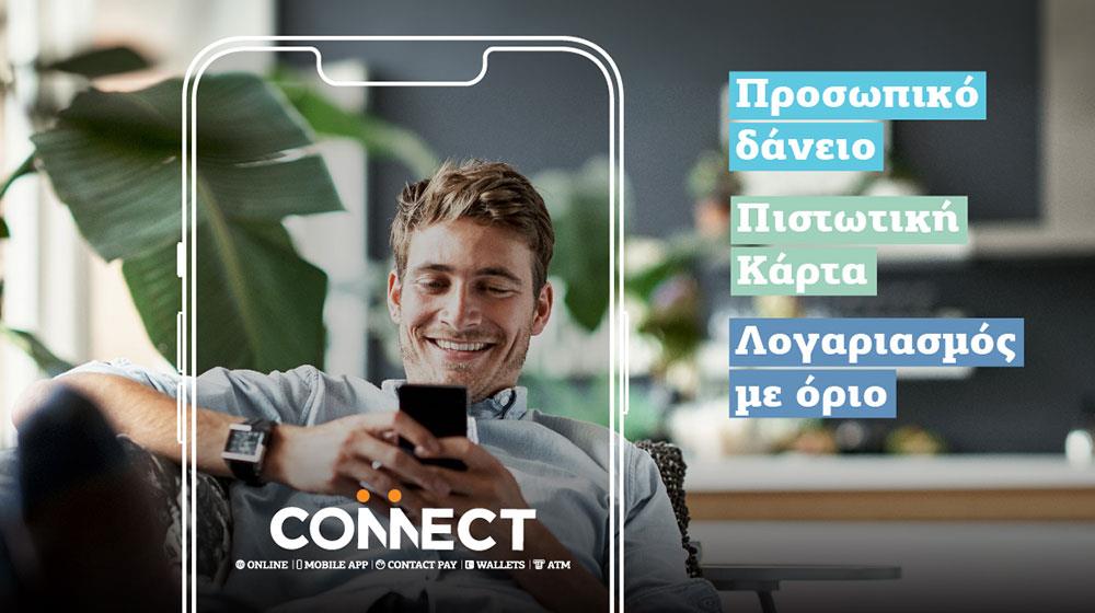 Γρήγορα και από οποιοδήποτε σημείο και αν βρίσκονται, μόνο με τη χρήση του κινητού τους, οι πελάτες μπορούν να κάνουν CONNECT στο Hellenic Bank Mobile App και μέσα από μερικά απλά βήματα να υποβάλουν αίτηση για τις πιστωτικές διευκολύνσεις που επιθυμούν.
