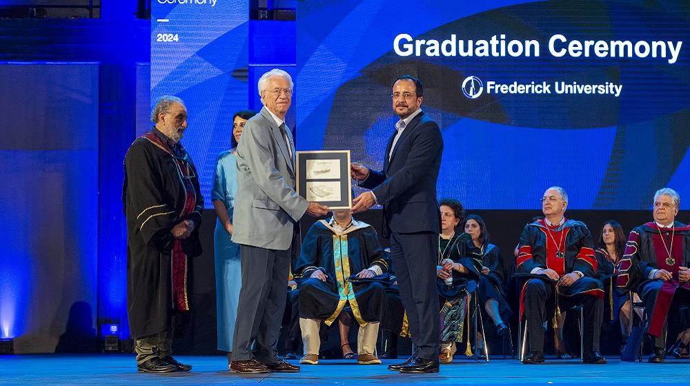 Το Πανεπιστήμιο Frederick, μέσα από την ιδιαίτερη προσήλωσή του, στις σύγχρονες μεθόδους διδασκαλίας, την έρευνα, την ακαδημαϊκή αριστεία, ως επίσης την εφαρμογή της παραγόμενης γνώσης και έργου προς όφελος και της κοινωνίας και όλων των πολιτών, έχει καταξιωθεί ανάμεσα στα πιο σημαντικά ακαδημαϊκά ιδρύματα του τόπου μας και όχι μόνο, συνέχισε ο Πρόεδρος της Δημοκρατίας, προσθέτοντας ότι την ίδια στιγμή, «στο πλαίσιο των ποιοτικών και καινοτόμων προγραμμάτων σπουδών και υπό την καθοδήγηση του άρτια καταρτισμένου επιστημονικού και ερευνητικού του προσωπικού, το Πανεπιστήμιο Frederick έχει σημειώσει σημαντικότατες διακρίσεις, για τις οποίες η Πολιτεία δικαιούται να είναι υπερήφανη, αποσπώντας σπουδαίες βραβεύσεις για τη συμβολή του στην πρόοδο της επιστήμης και της τεχνολογίας».