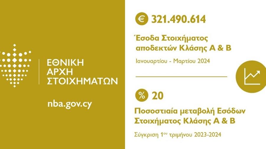 Tα μεικτά έσοδα στοιχήματος αποδεκτών Κλάσης Α (επίγειο στοίχημα) και Κλάσης Β (διαδικτυακό στοίχημα) ανήλθαν στα €321.490.614, σημειώνοντας αύξηση 20% σε σύγκριση με το αντίστοιχο τρίμηνο του 2023 (€267,620,865) και αύξηση της τάξης του 45% συγκριτικά με το πρώτο τρίμηνο του 2022 (€221.051.623).