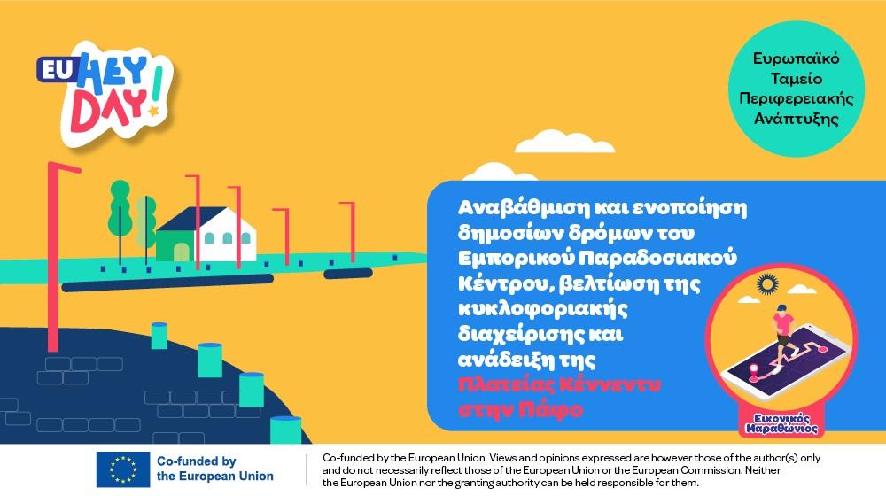 Ο σχεδιασμός ενός εικονικού Μαραθωνίου είναι μόλις μία από τις δράσεις που αναμένεται να κεντρίσουν το ενδιαφέρον του κόσμου και να αναδείξουν έργα της Ε.Ε. Το έργο EUHeyday μέσω του Εικονικού Μαραθωνίου, μια καινοτόμο πρωτοβουλία η οποία στοχεύει στην ενίσχυση της προβολής και του αντίκτυπου των έργων που υποστηρίζονται από την Πολιτική Συνοχής στην Πάφο, και συγκεκριμένα από το Ευρωπαϊκό Ταμείο Περιφερειακής Ανάπτυξης. Μέσω του έργου DiGiNN, το οποίο συγχρηματοδοτείται από την Ευρωπαϊκή Επιτροπή και το Υφυπουργείο Έρευνας, Καινοτομίας και Ψηφιακής Πολιτικής της Κυπριακής Δημοκρατίας, έχει εικονικοποιηθεί μια καθορισμένη διαδρομή, με 10 επιλεγμένα σημεία στην πόλη της Πάφου, αναδεικνύοντας τις μεταμορφωτικές πρωτοβουλίες που υλοποιούνται σε διάφορα σημαντικά σημεία της πόλης.