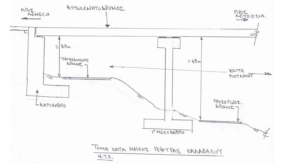 Σημειώνεται ότι η αναβάθμιση της γέφυρας Καλαβασού αφορούσε εργασίες ενδυνάμωσης για να πληροί τους νέους αυστηρότερους Σεισμικούς Κώδικες, χωρίς διαφοροποίηση του ύψους της γέφυρας.